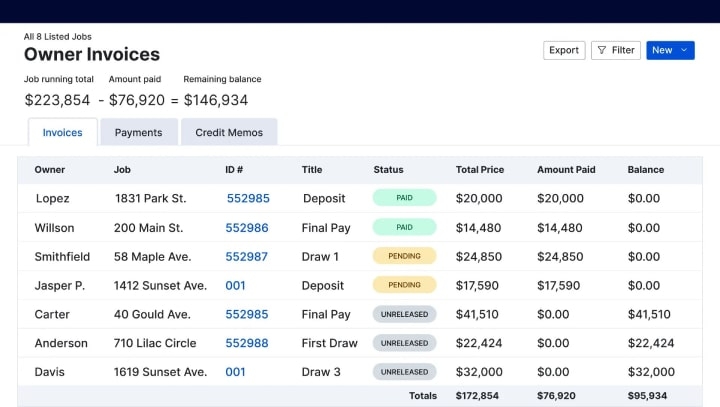 The software makes it easy to send quotes, schedule jobs, and invoice customers, essential features for a general contractor CRM.