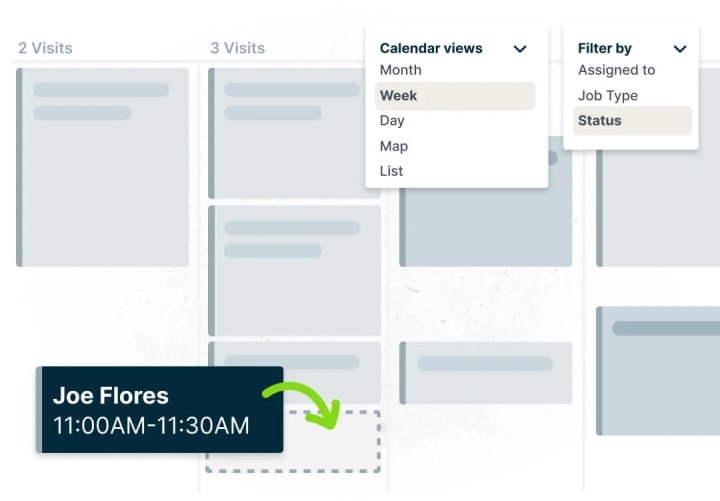 Scheduling is a crucial feature of a general contractor CRM. Jobber’s drag-and-drop calendar makes scheduling a breeze.