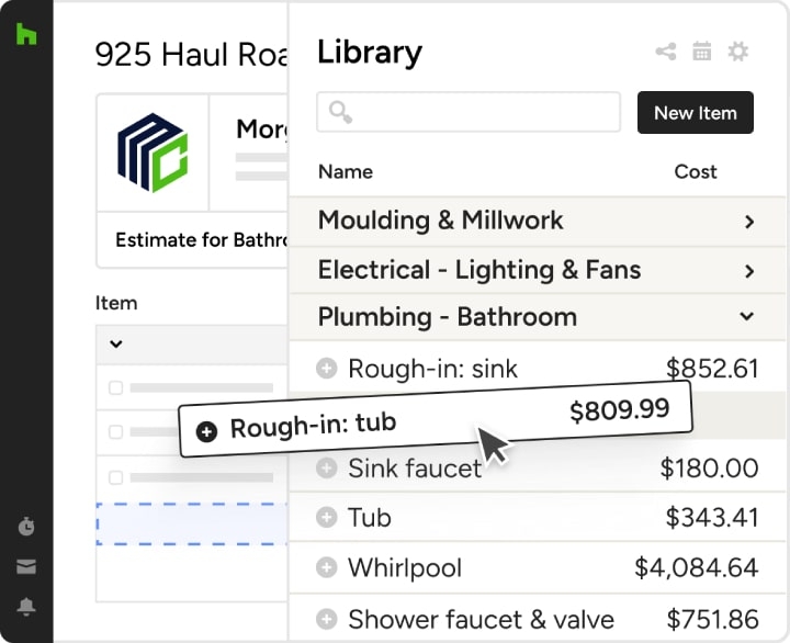 Houzz Pro allows you to create custom templates and cost catalogs for your business. It lets you add your company’s logo, descriptions, and terms.