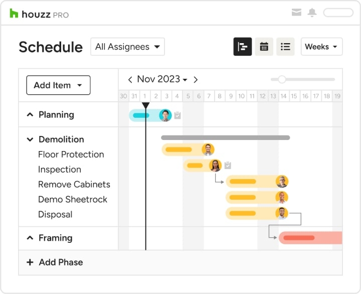 With Houzz Pro’s project management tools, you can keep clients, team members, and all other stakeholders on the same page.